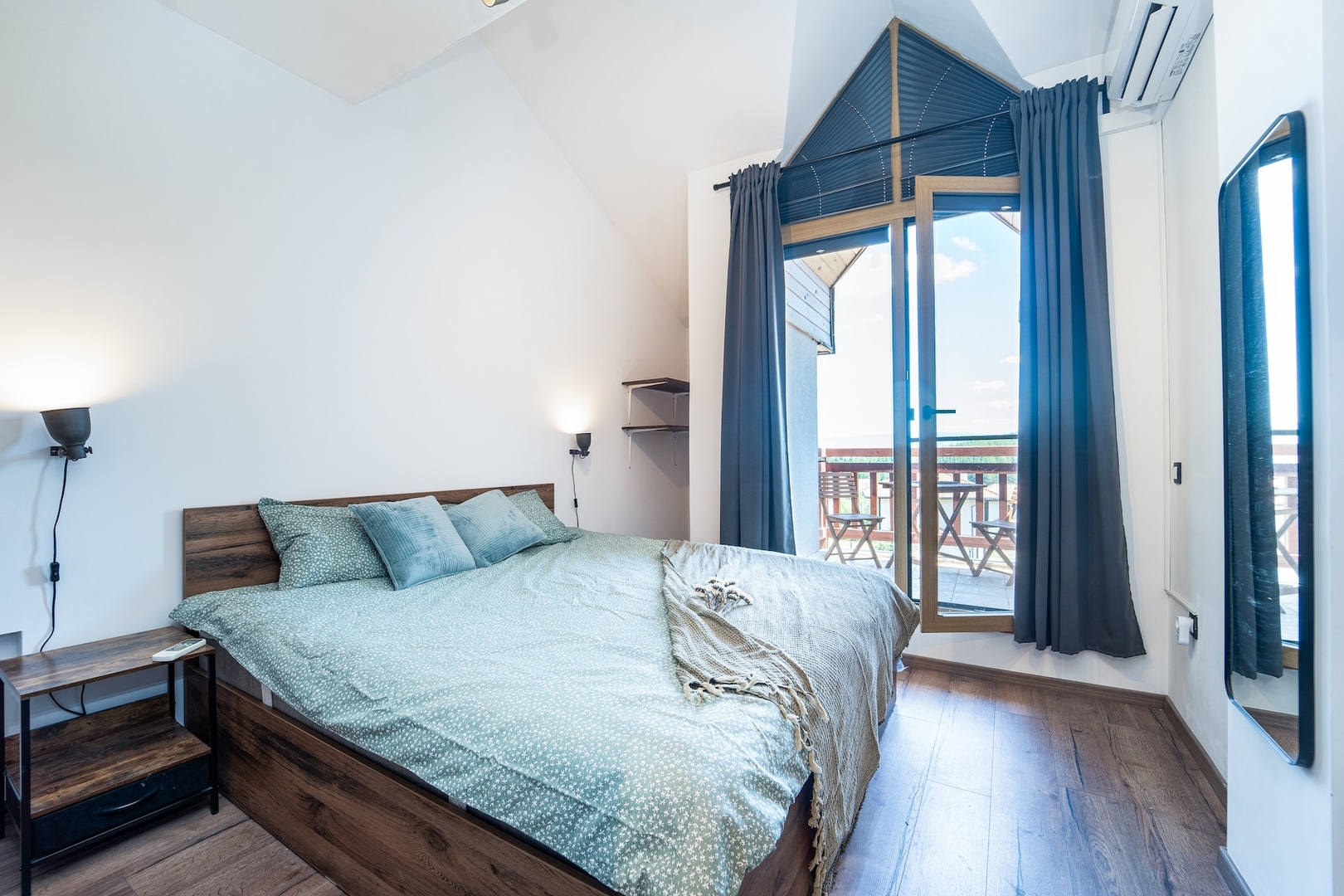 Newly renovated 2 Bedroom Penthouse in a complex located in the National Park Pirin, the highest point of the City. Amazing atmosphere, quiet, and beautiful surroundings. Perfect place to have a peaceful and relaxing vacation. The building is located near the forest of Pirin National Park. The apartment has an amazing view that you see the mountain. You can enjoy a memorable sunrise in the morning and have a warm movie night next to the fireplace.
