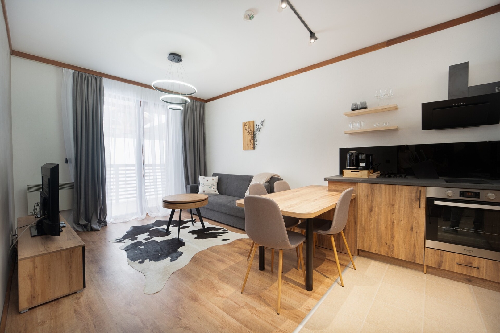 Escape to a peaceful mountain retreat in this modern 1-bedroom apartment with warm alpine design—perfect for relaxing after a day in the Pirin Mountains. The complex sits in a quiet, scenic area at the foot of Pirin, close to hiking trails and the ski zone. Enjoy fresh air, beautiful views, free on-site parking, and WiFi throughout the property.